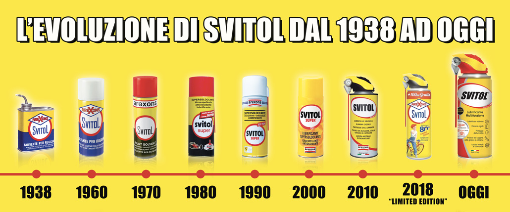 Il prodotto si evolve, recependo tutti i miglioramenti offerti dalle tecnologie, per rispondere alle diverse caratteristiche dei nuovi materiali sui quali Svitol Lubrificante Multifunzione può essere applicato.