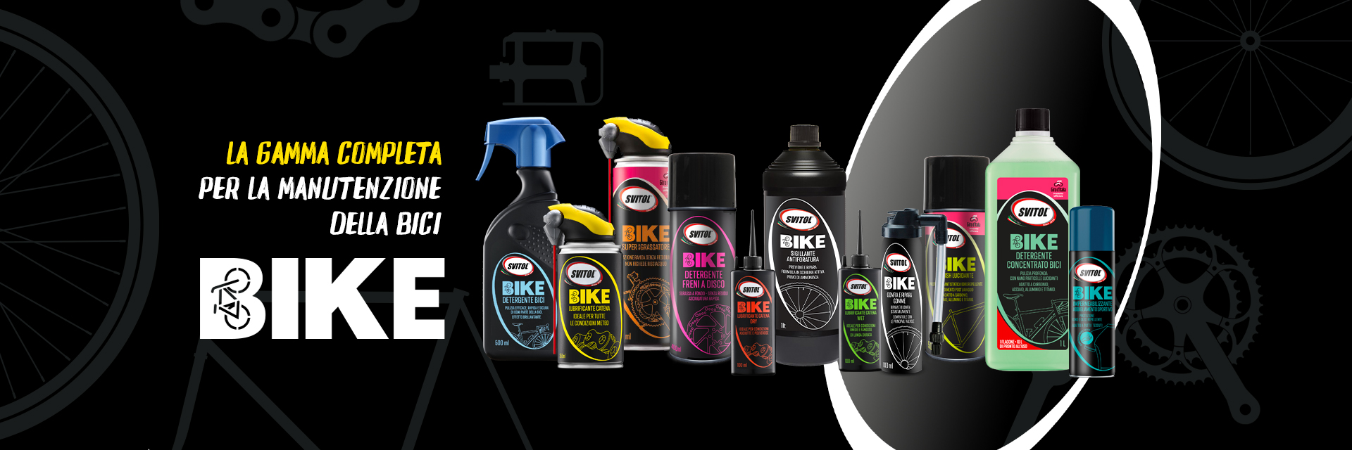 Svitol BIKE, la gamma completa per la manutenzione della bici. Detergente, super-sgrassatore e lubrificante catena per una manutenzione a 360°.